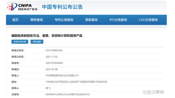 为解决以上问题,2021年底,作业帮公开一项专利发明,提供一种辅助批改的投影方法、装置、系统和计算程序产品,通过将批改图像投影到被固定的待批改页面上,解决手持手机和用笔切换问题,在批改过程中无需在屏幕与待批改文本之间的切换;同时该发明还优化待批改页面的投射画面清晰度的问题;有效提高批改效率,提高用户体验感。国家知识产权局官网显示,该专利公开号CN113596418A。